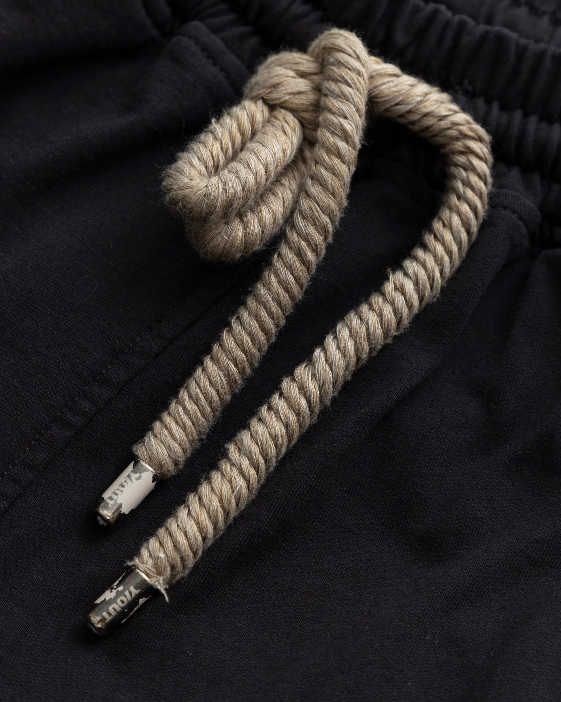 La cintura elástica con cordón grueso de inspiración náutica y los detalles gráficos de Y/OUT en frontal y posterior aportan carácter sin esfuerzo. Un esencial versátil con identidad propia.