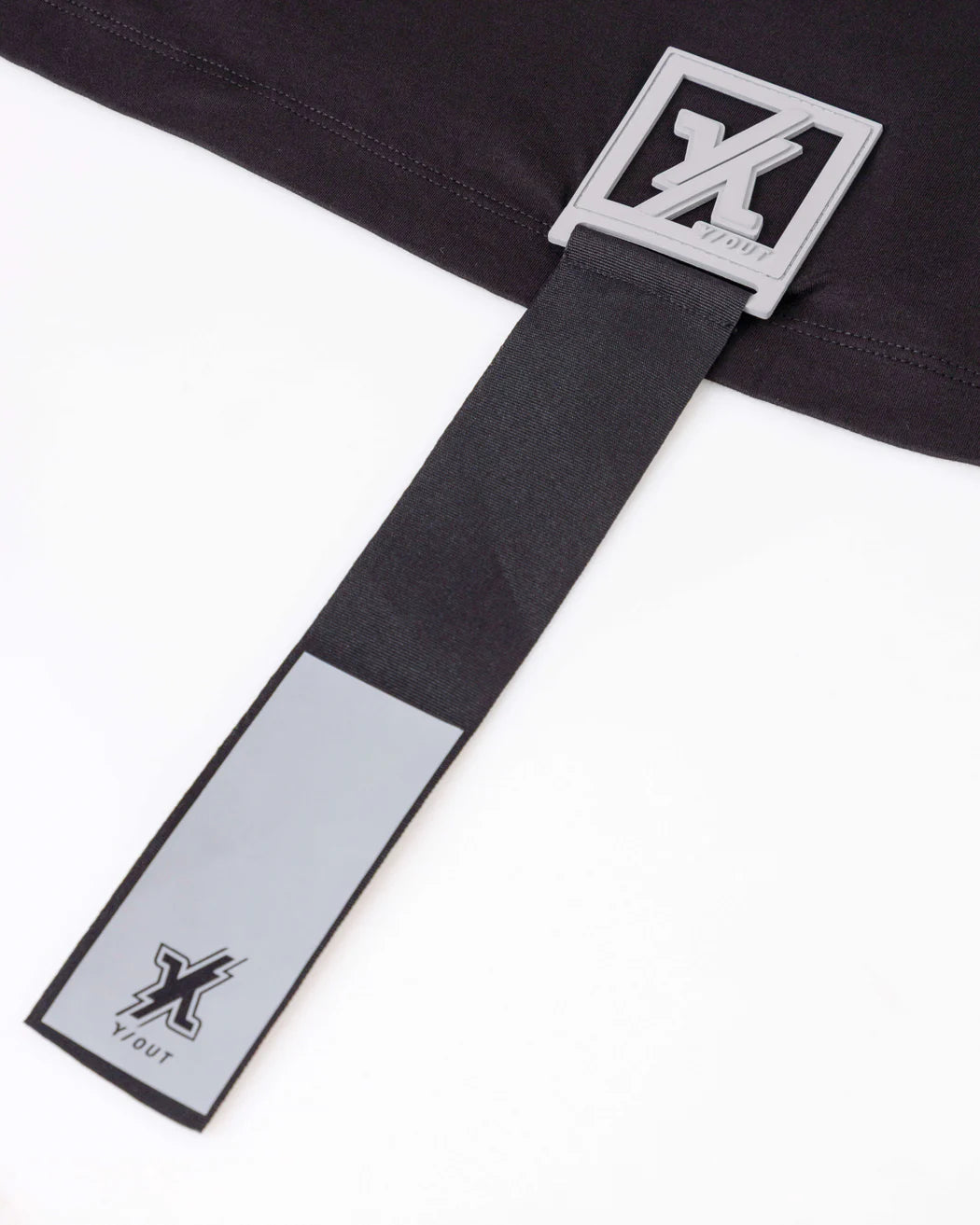 Cinta decorativa desmontable con hebilla de goma X reflectiva en la espalda baja: úsala, quítala o reubícala según tu mood.
