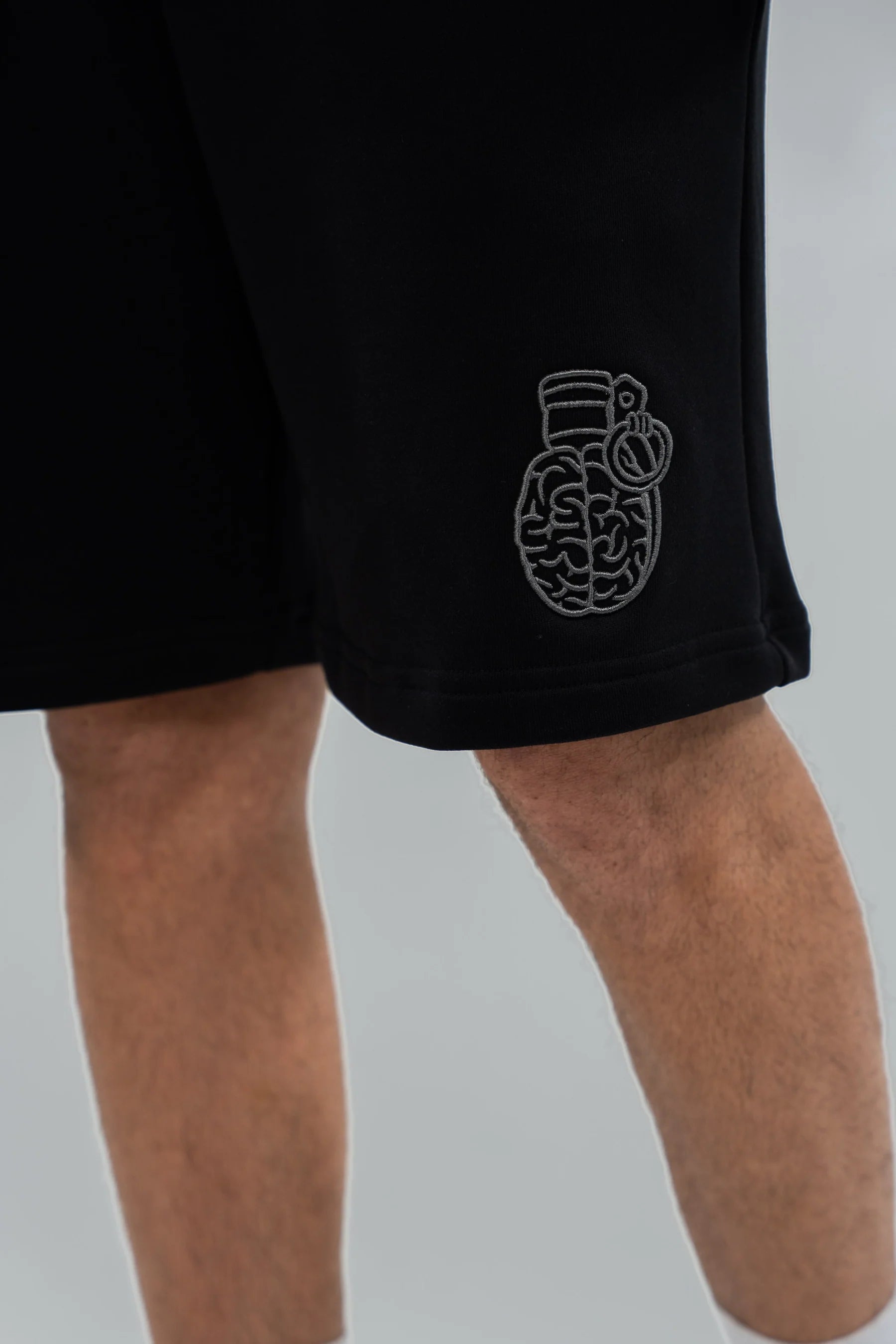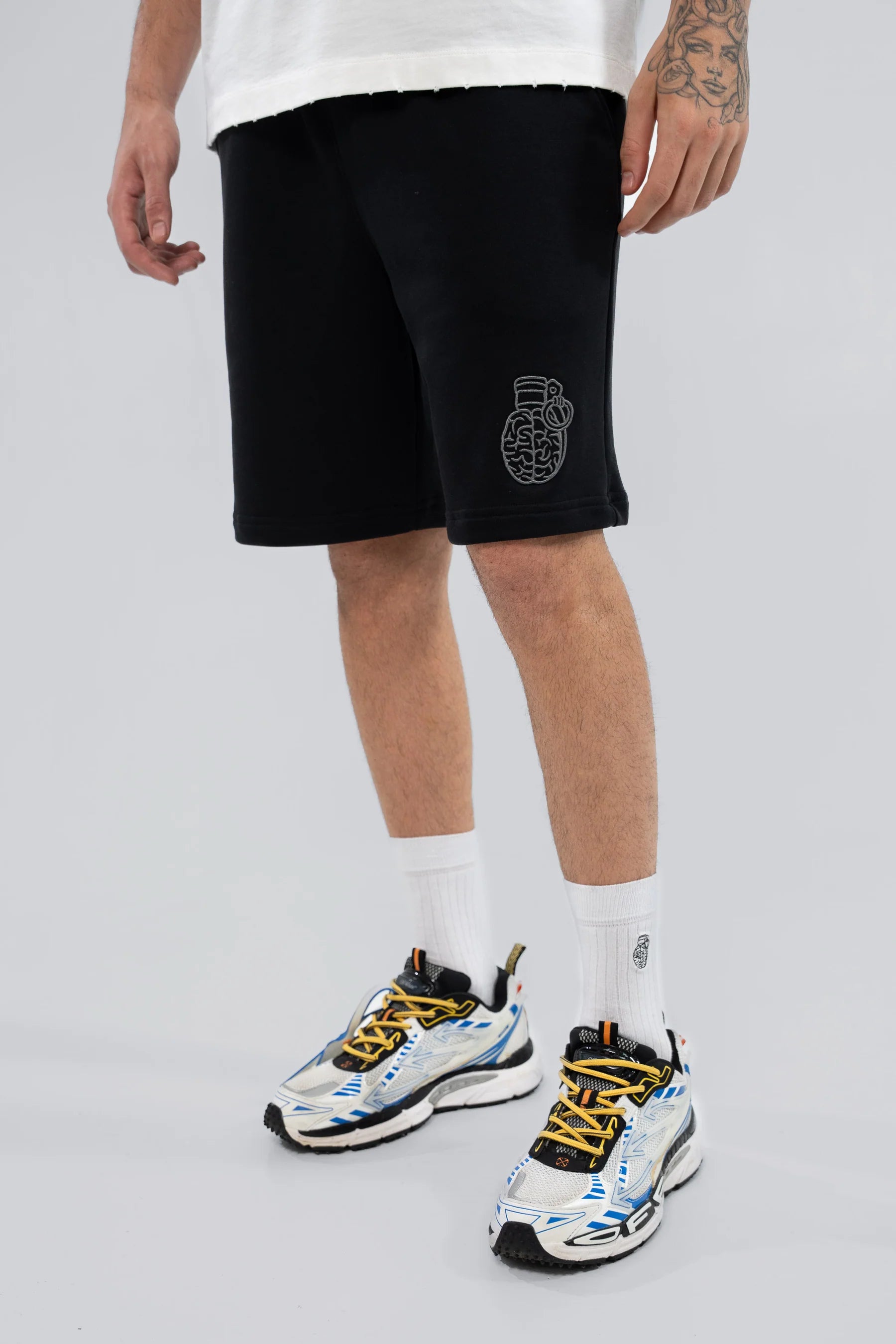 Eleva tu look urbano con estos shorts negros confeccionados en french terry de algodón premium: suaves por dentro, firmes por fuera y perfectos para la ciudad o el gym. El detalle que marca la diferencia es el parche bordado en 3D con la icónica granada-cerebro, símbolo de creatividad explosiva. El diseño minimalista se completa con cintura elástica, cordón ajustable y bolsillos laterales para llevar lo esencial sin sacrificar estilo.