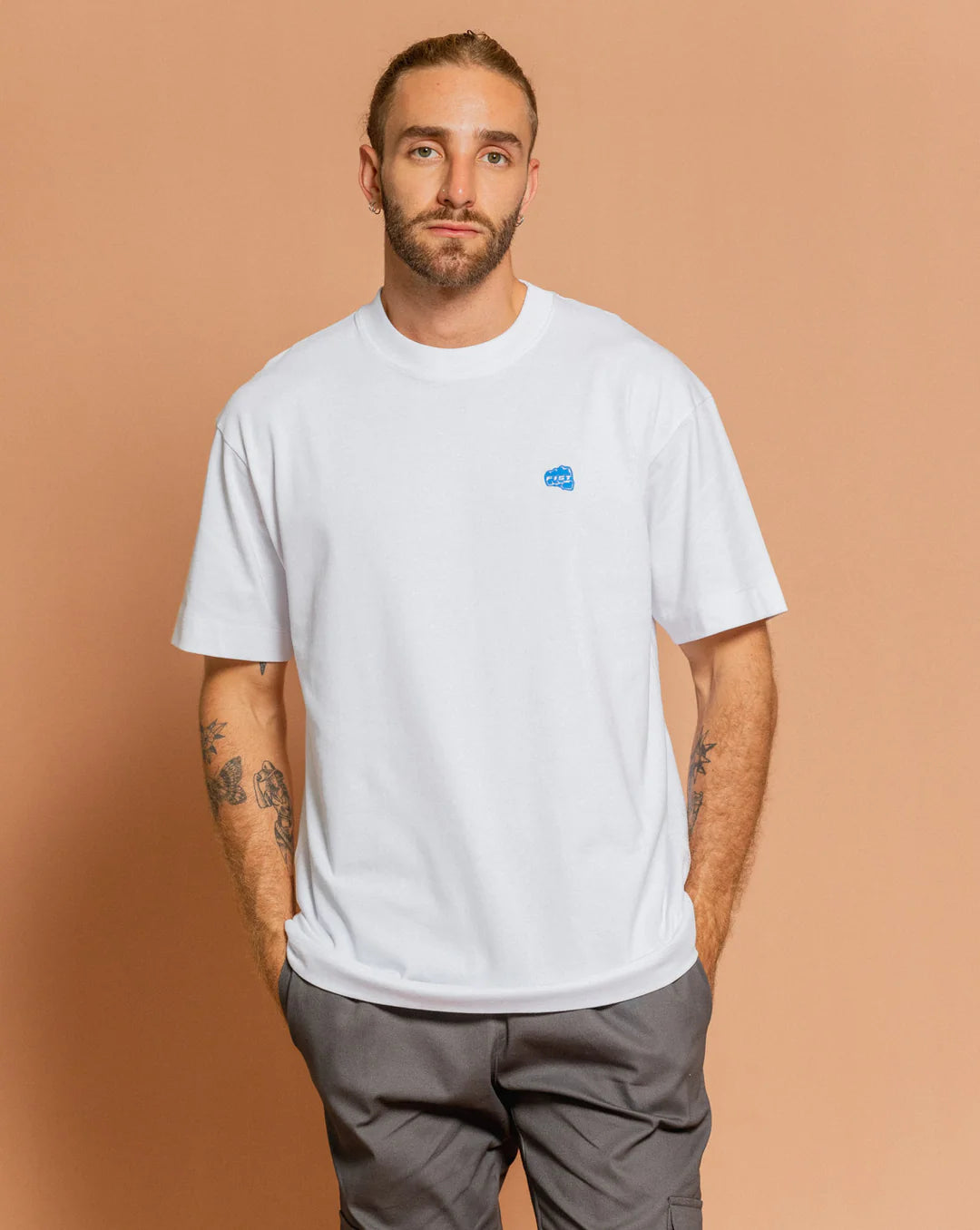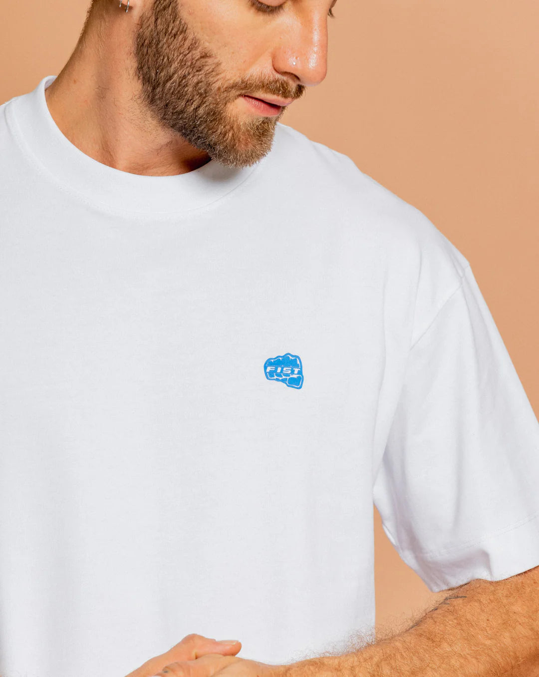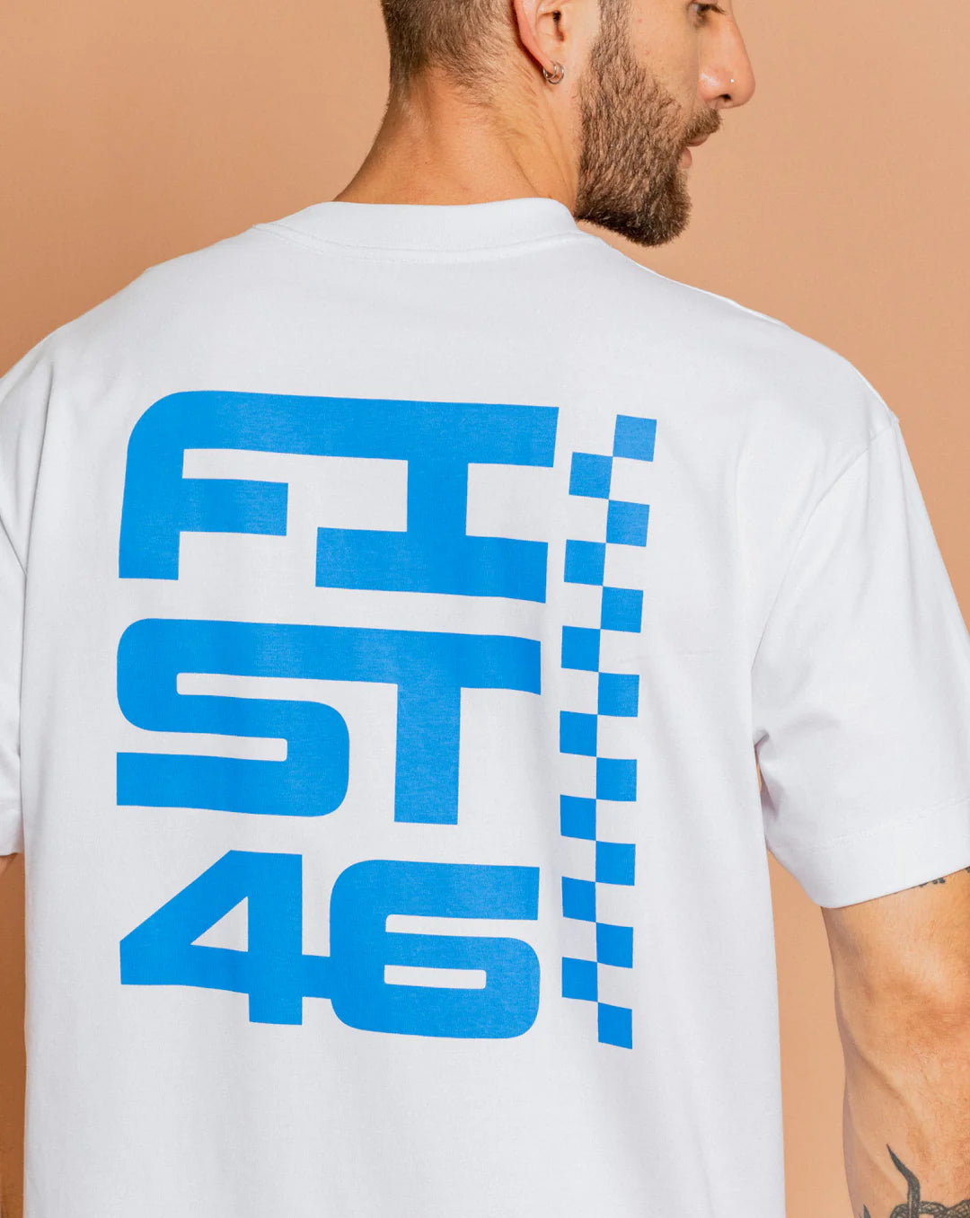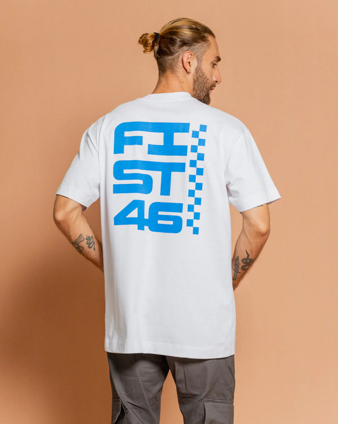 Camiseta de corte oversized confeccionada en algodón suave que garantiza comodidad durante todo el día. Presenta un estampado en plastisol alto relieve en punto corazón y un gráfico en la espalda con impresión base agua, destacando el diseño FIST 46 con inspiración en el mundo del motociclismo. El cuello redondo en tela rib completa un look urbano, cómodo y lleno de actitud.