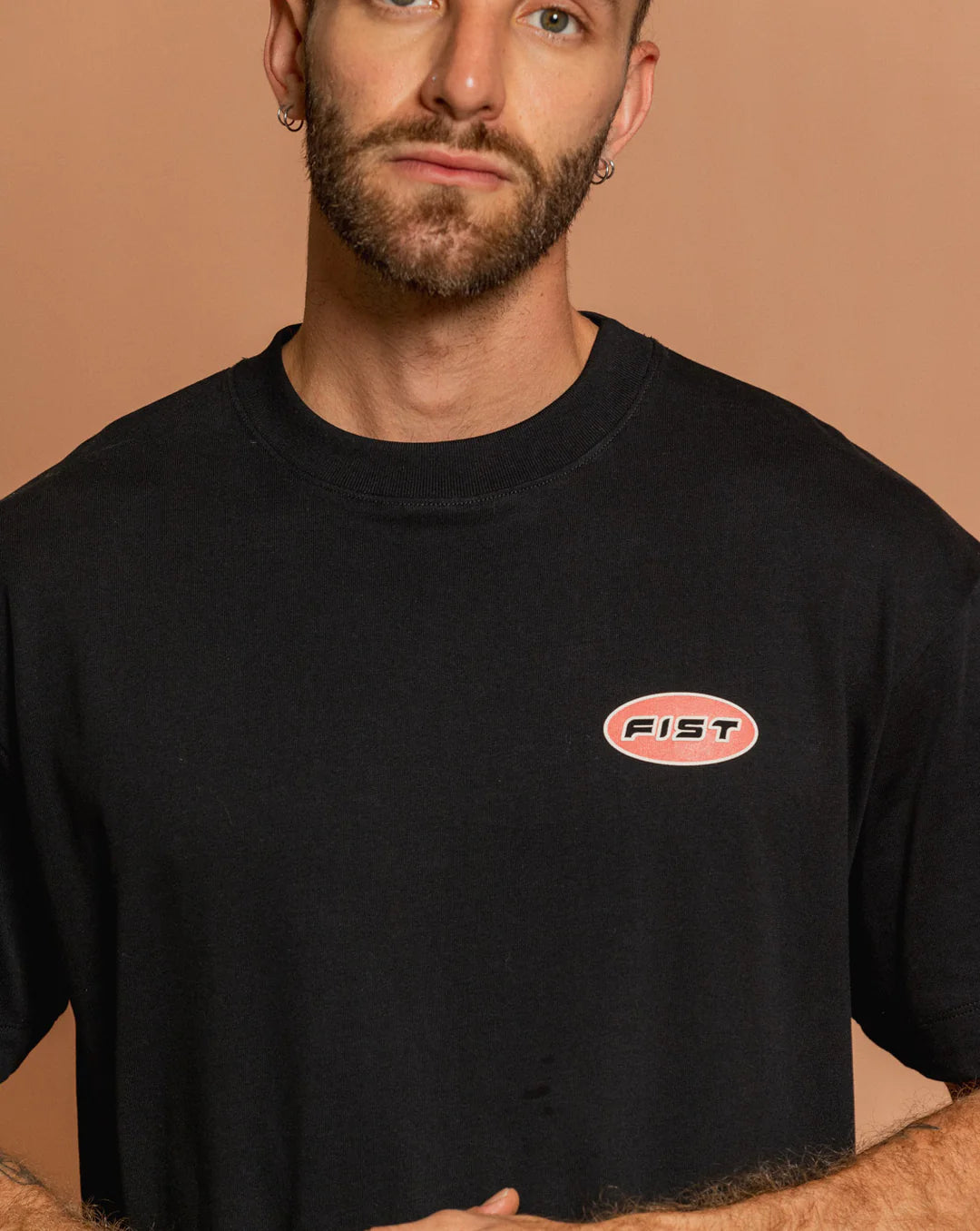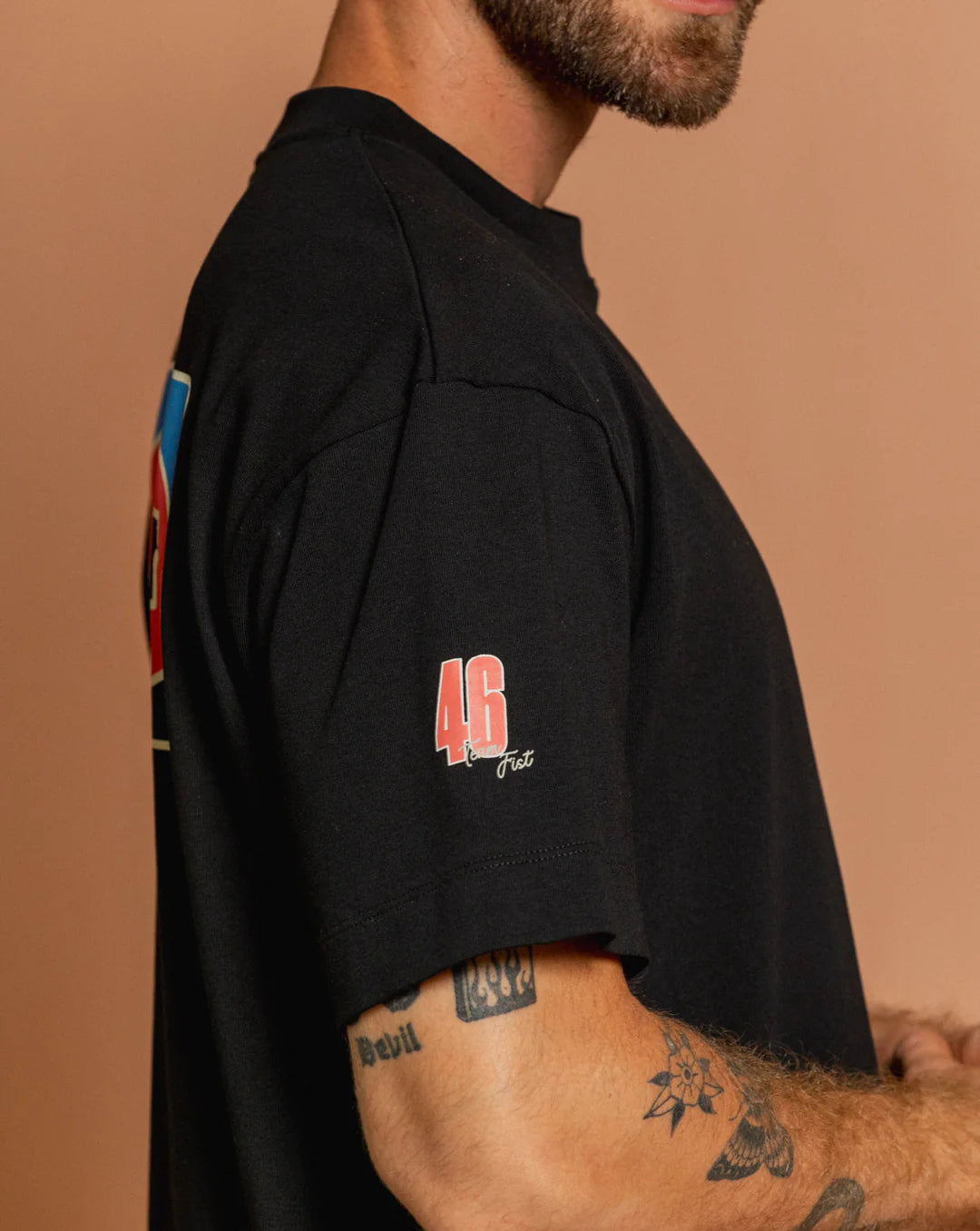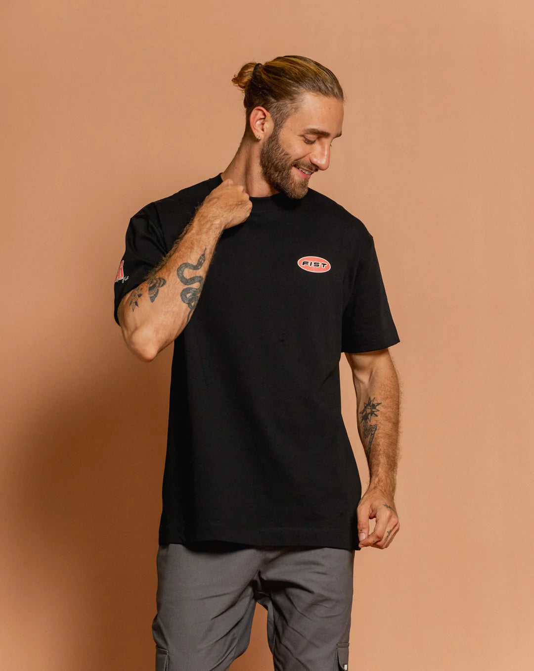 Con un estilo clásico y potente, esta camiseta negra de corte oversized está hecha en algodón suave, ideal para el día a día. Cuenta con cuello redondo en tela rib, un estampado base agua de gran tamaño en la espalda con el icónico logo "Fist Beating Limits", impresión en alto relieve en el pecho y plastisol plano en la manga con el número 46. Perfecta para quienes viven intensamente y buscan destacar con estilo auténtico.