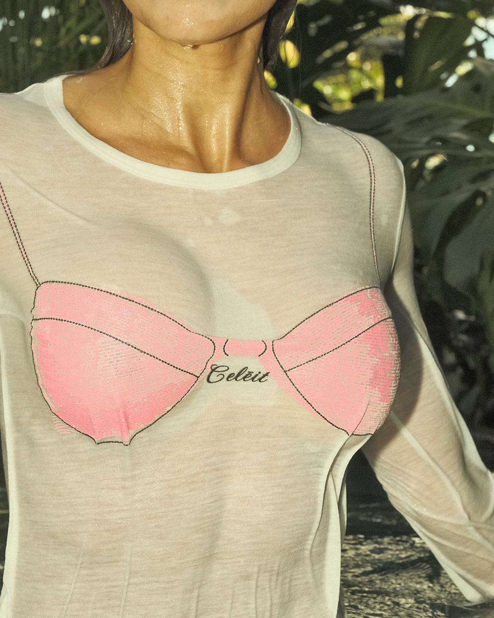 Print gráfico atrevido con estética tropical e irónica.