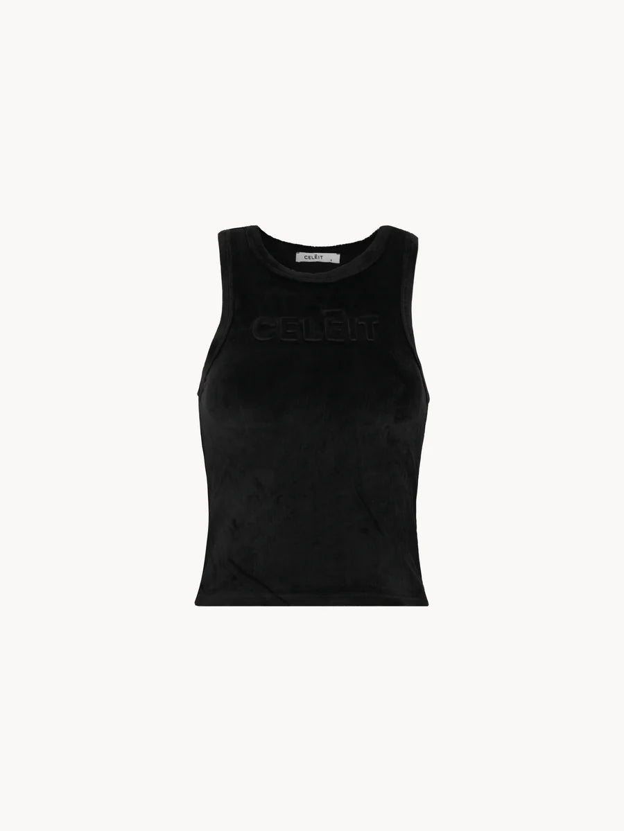Compra con confianza, tu pago está protegido de principio a fin.Impulsa tus básicos con un toque after-dark. Este tank top negro combina la sensualidad del velour elástico (94 % poliéster, 6 % spandex) con un corte slim fit que resalta la figura sin sacrificar comodidad. El frente presume el nombre CELEÏT repujado tono a tono, creando un efecto tridimensional discreto pero sofisticado.