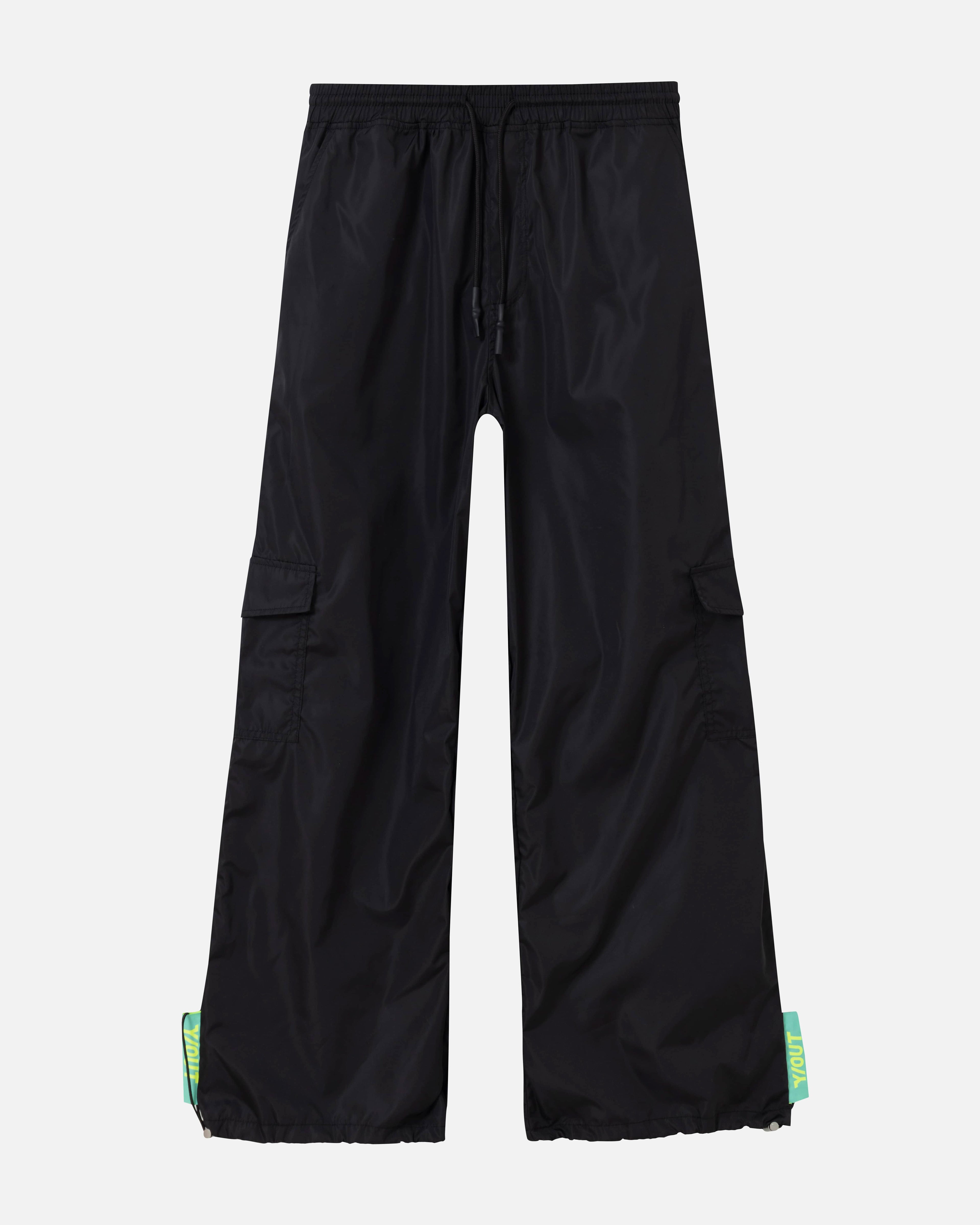 Fabricado en algodón liviano de 100 g, presenta una silueta regular con bota recta, cintura elástica ajustable y bolsillos laterales utilitarios. Detalles gráficos discretos y acabados premium refuerzan su carácter moderno y versátil.