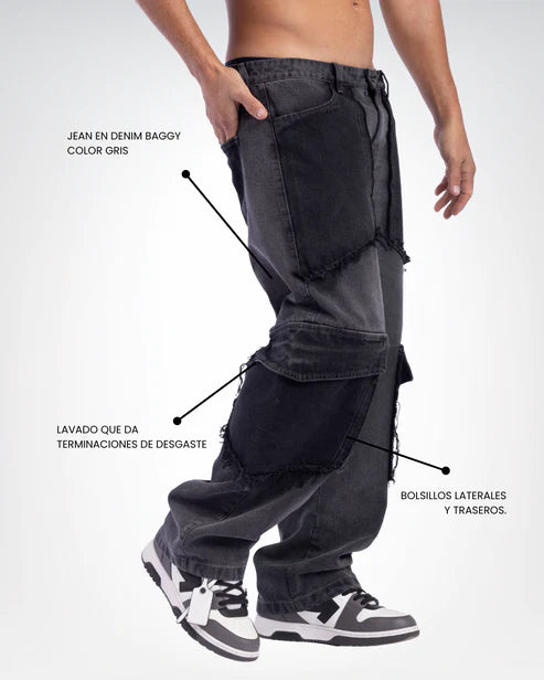 El Hidden Washed Gray Jean redefine el estilo urbano con un enfoque que mezcla diseño utilitario y estética desgastada. Su silueta baggy en denim gris incorpora un lavado que simula el paso del tiempo, logrando un look auténtico y relajado. Los bolsillos cargo en negro resaltan con intención, aportando textura y contraste visual a una prenda que no busca llamar la atención, pero inevitablemente lo hace.