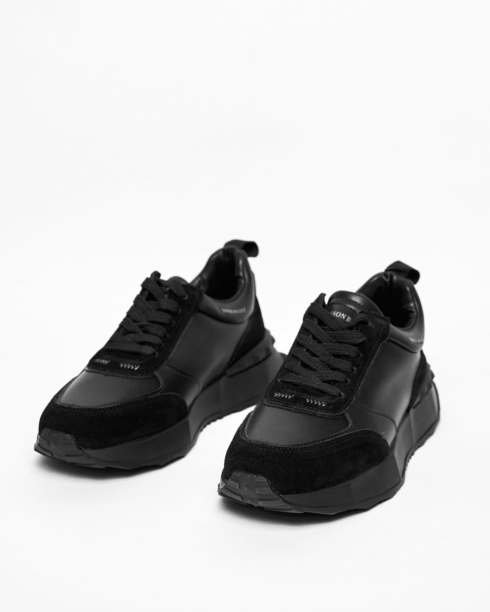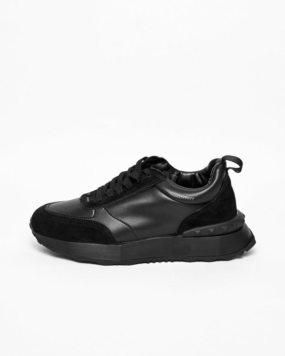 Material exterior: 100% cuero. Plantilla: 100% cuero para mayor confort. Diseño: silueta urbana con acabado monocromático. Color: negro total. Estética: lujo urbano con enfoque minimalista.