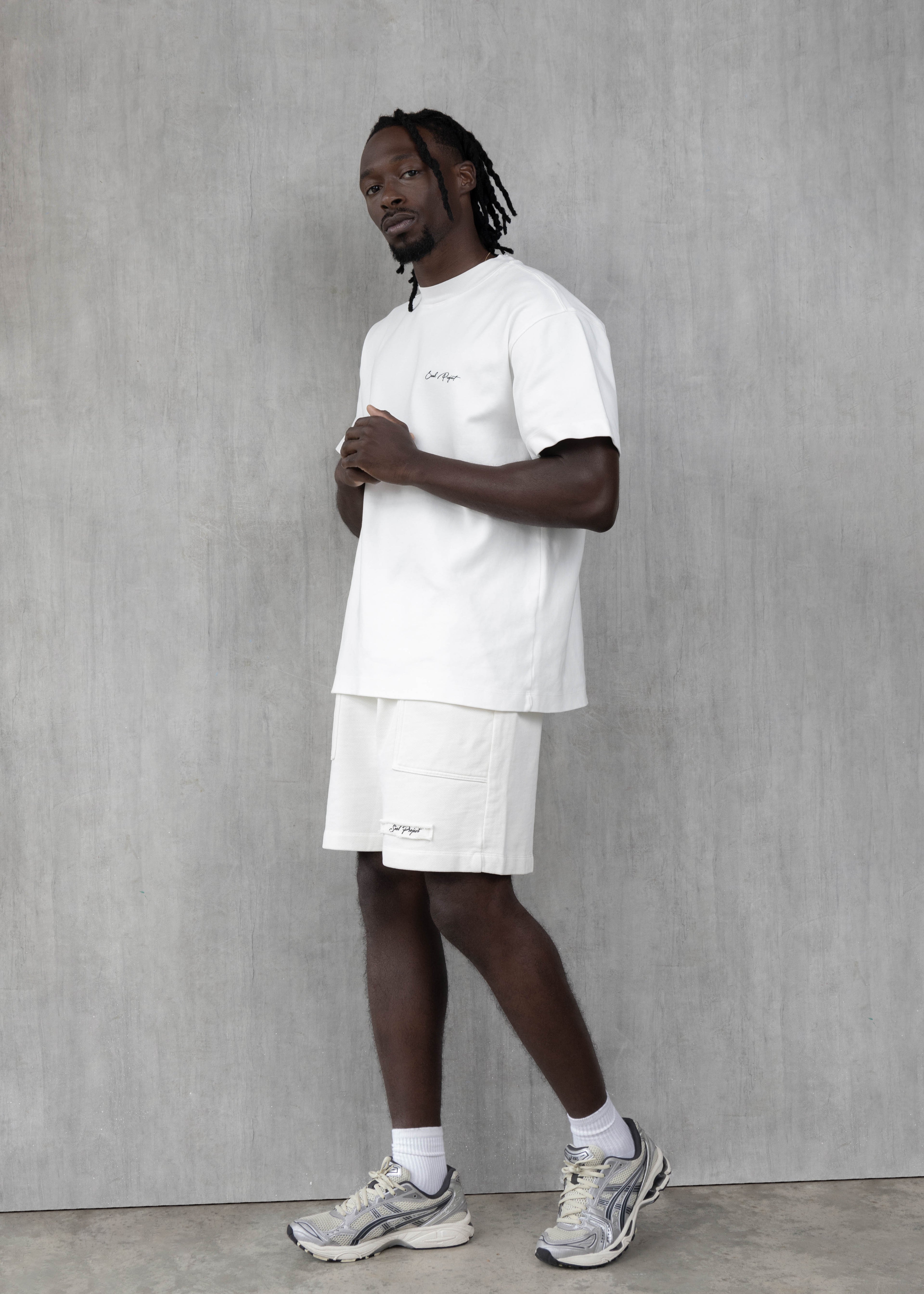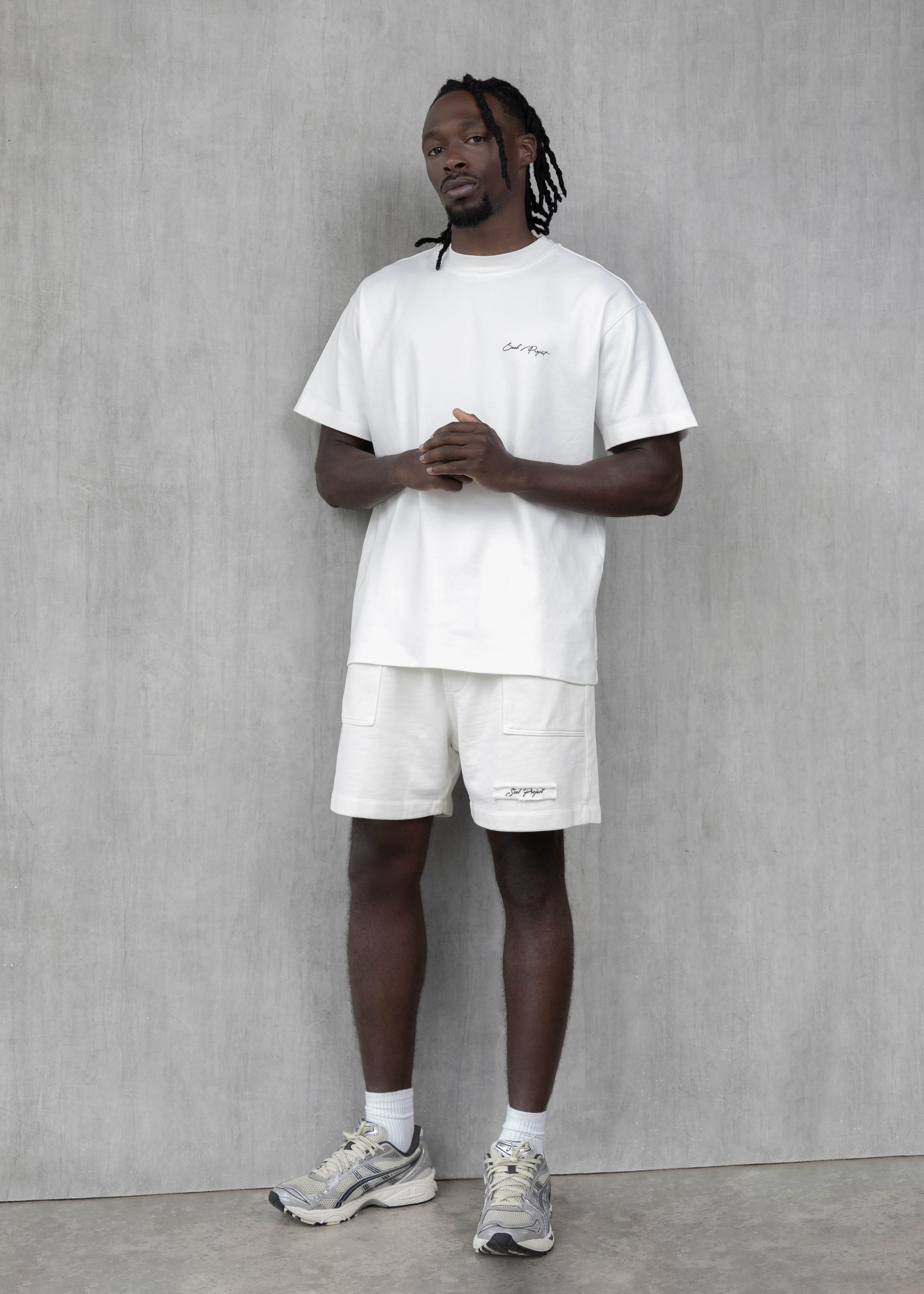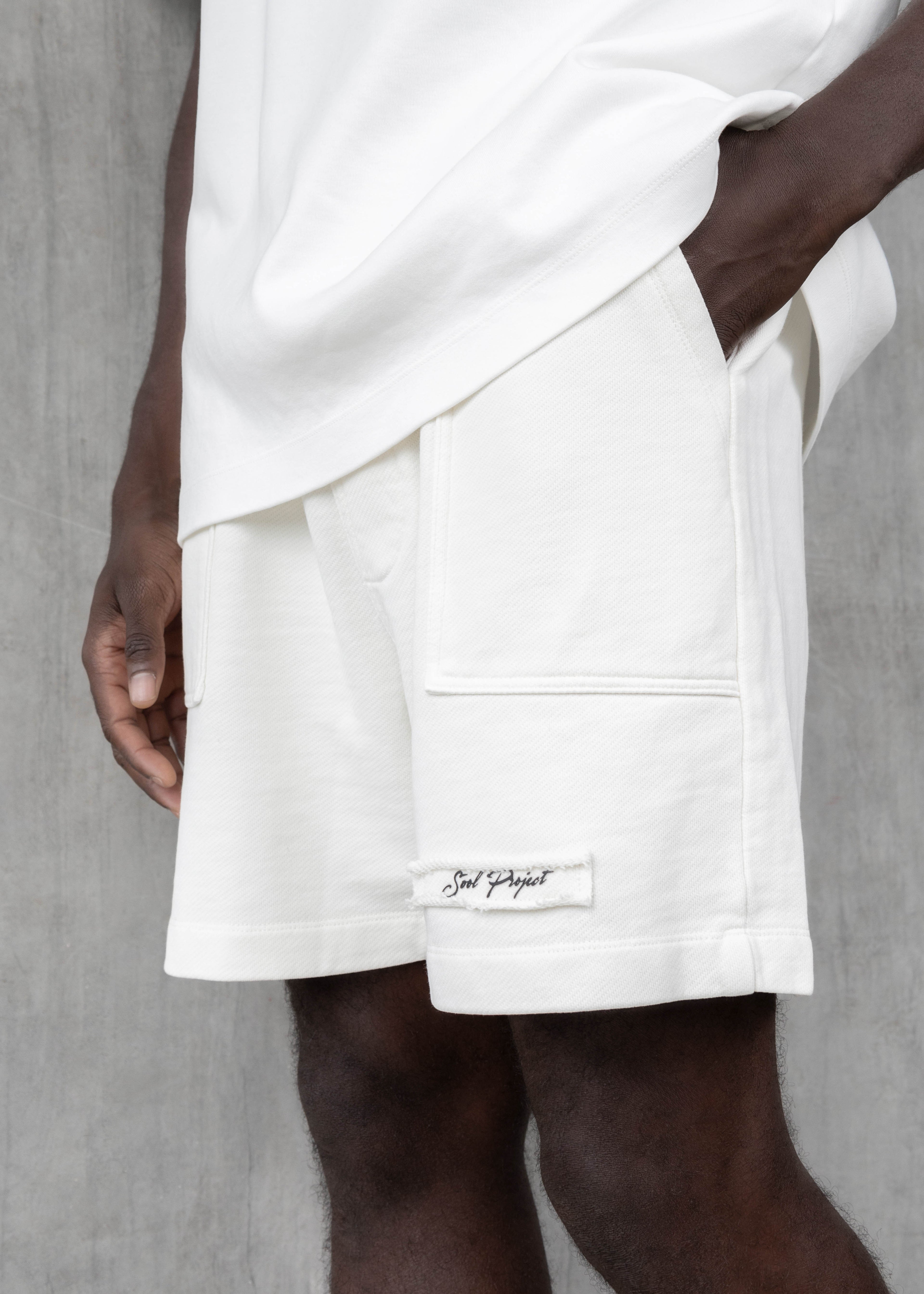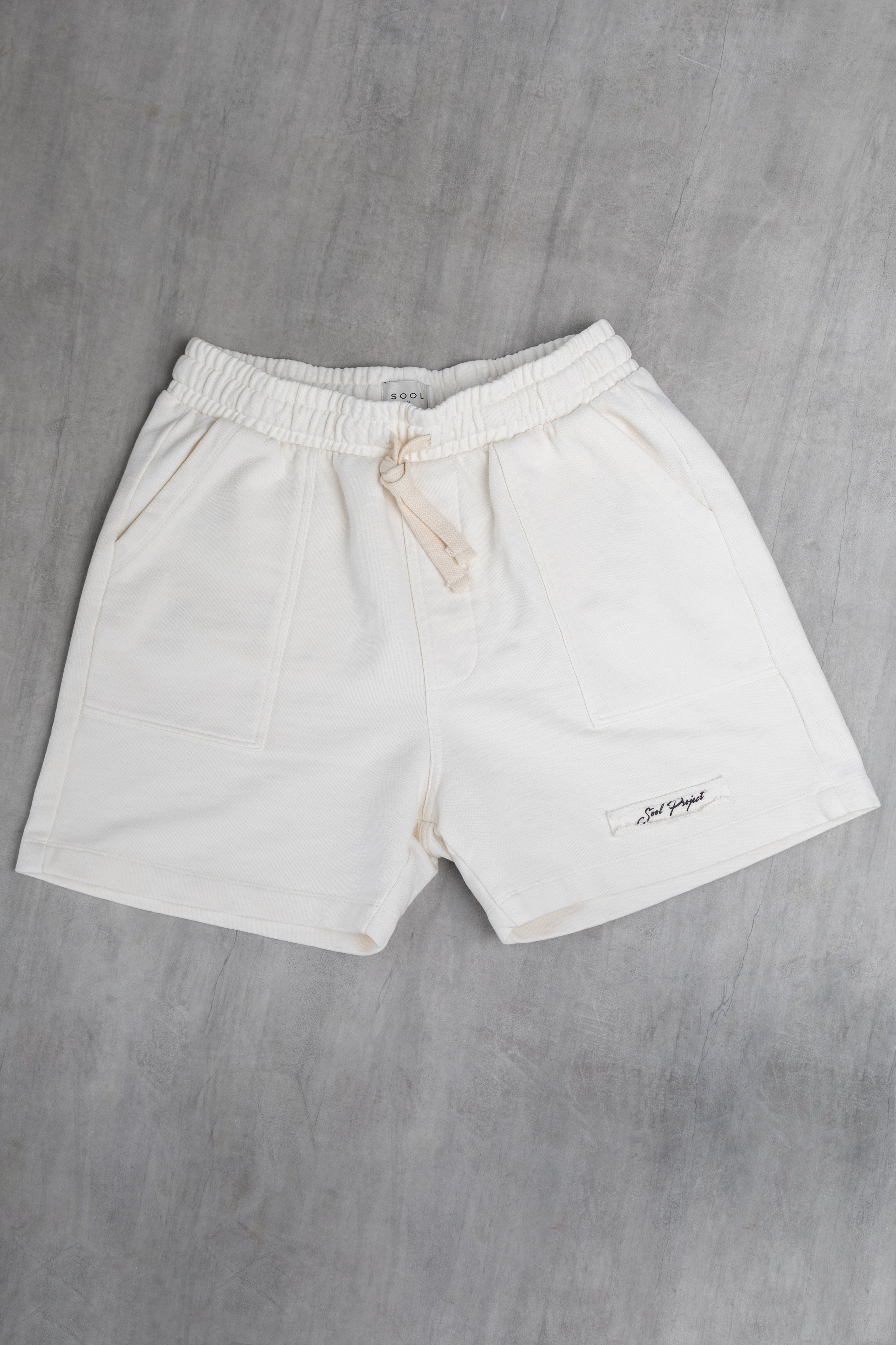 Explora la comodidad sin perder el estilo con esta bermuda unisex en tono marfil, confeccionada en algodón premium de 450 gramos. Su estructura firme y suave ofrece un ajuste relajado ideal para el día a día. Con bolsillos de corte frontal que añaden carácter funcional y un parche bordado con la firma “Sool Project”, es una prenda esencial que une lo minimalista con lo auténtico.