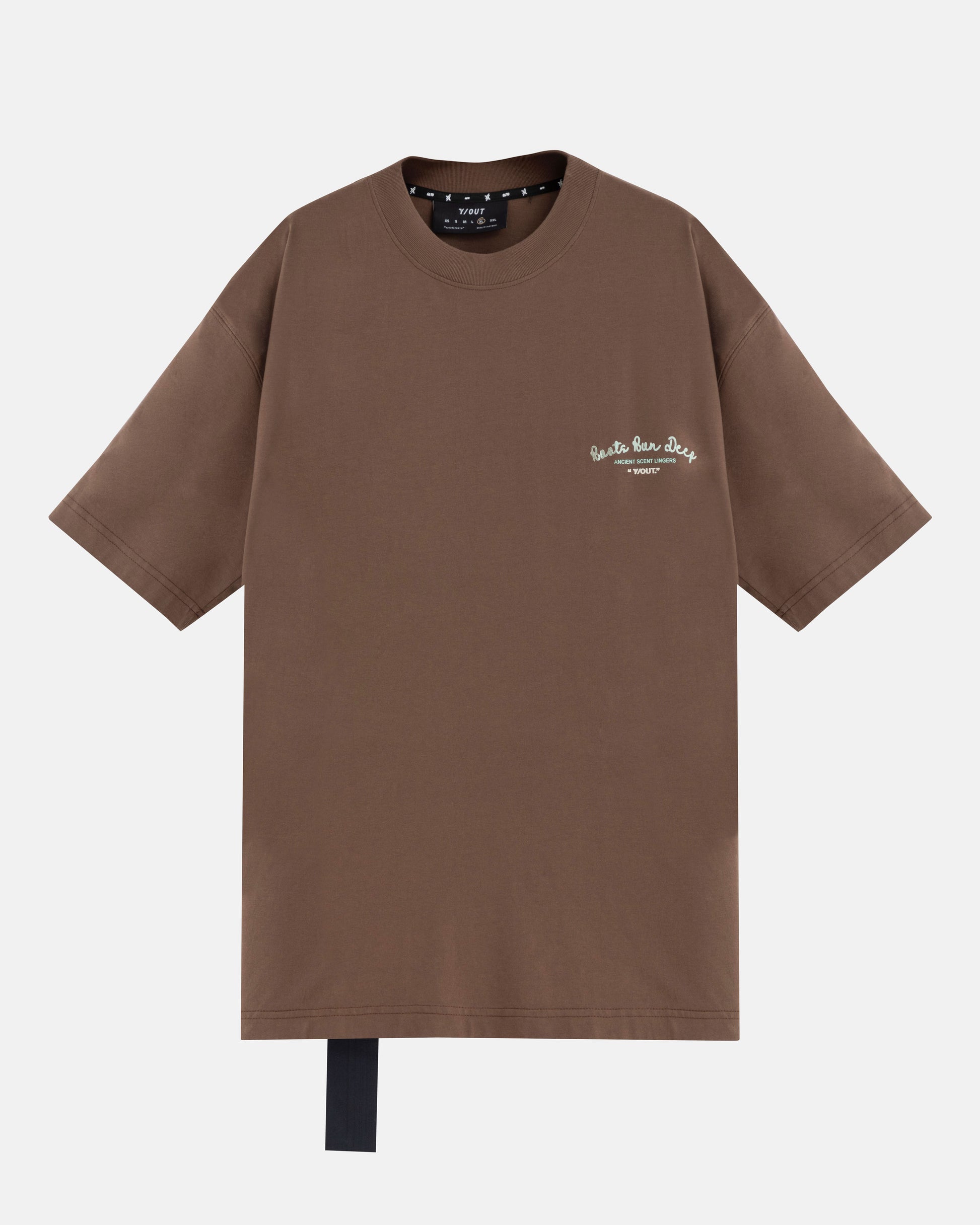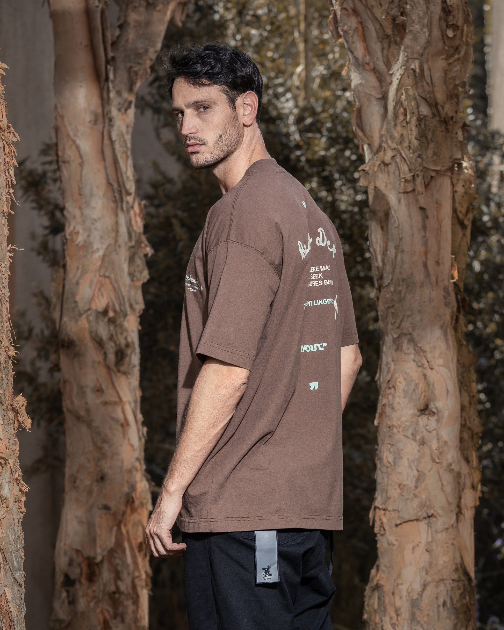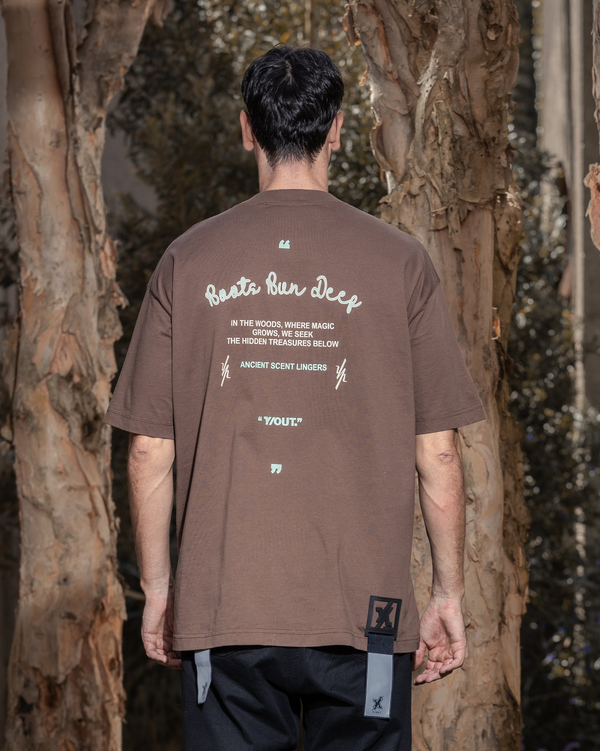 La Scent T-Shirt en tono brown es una prenda esencial para quienes viven con autenticidad y buscan piezas con narrativa visual. Su diseño oversized y gráfico inspirado en lo místico del bosque le aporta una identidad única que trasciende lo básico. Frases como “Roots Run Deep” y “Ancient Scent Lingers” invitan a conectar con la esencia de la marca, mientras que el print en tono menta resalta sobre el fondo terroso, aportando un contraste vibrante.
