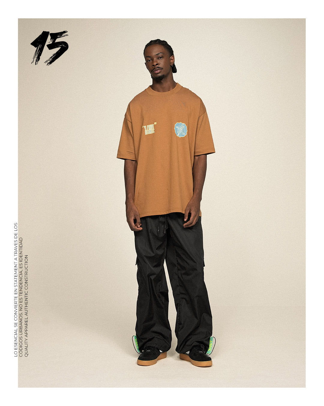 Elaborada en algodón de 280 g, presenta una silueta oversize con cuello redondo reforzado, bordado frontal y gráfico posterior de gran formato. Su confección premium garantiza estructura, comodidad y una presencia sólida que eleva el estilo cotidiano.