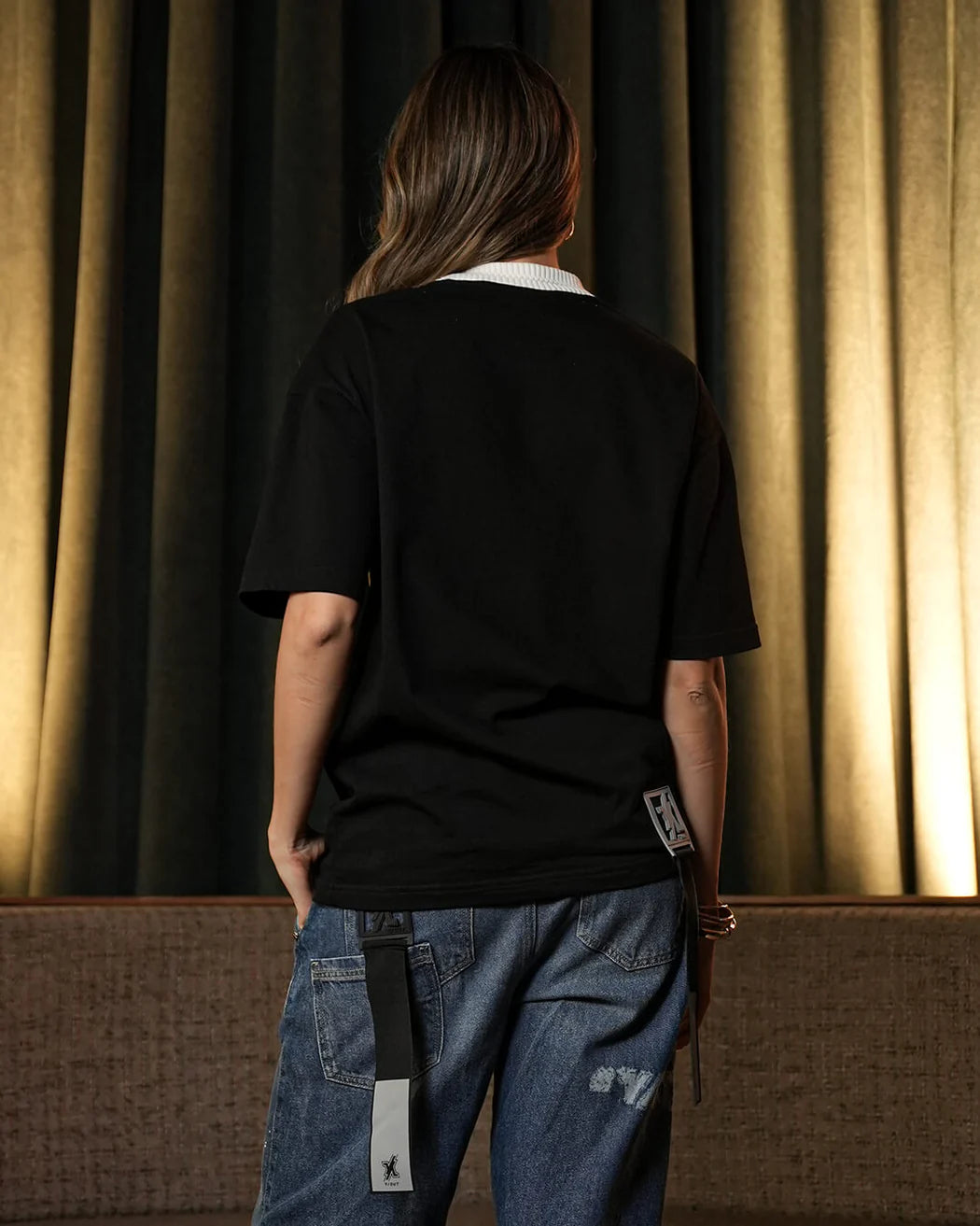 Una camiseta oversize que fusiona la vibra varsity con la elegancia del streetwear delicado.