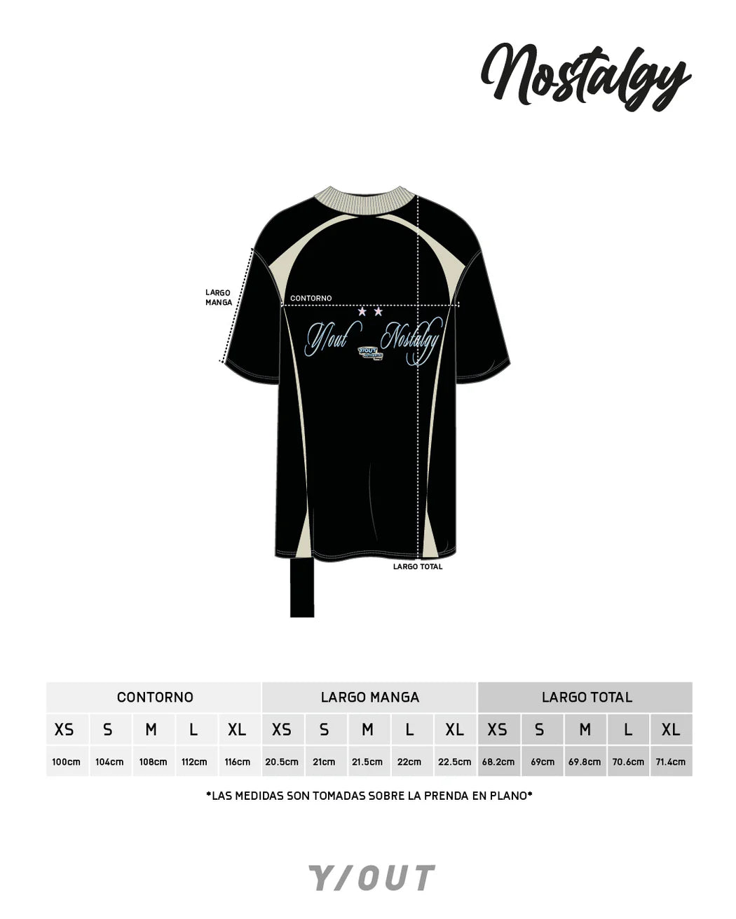 Paneles y ribetes en contraste marfil, inspirados en jerseys universitarios de los 90.