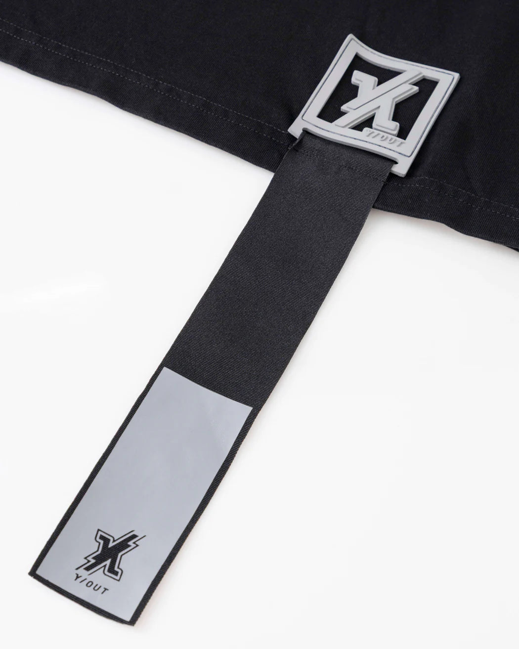 Tira desmontable con hebilla “X” de goma inyectada y sección reflectante, el toque utilitario de la colección.