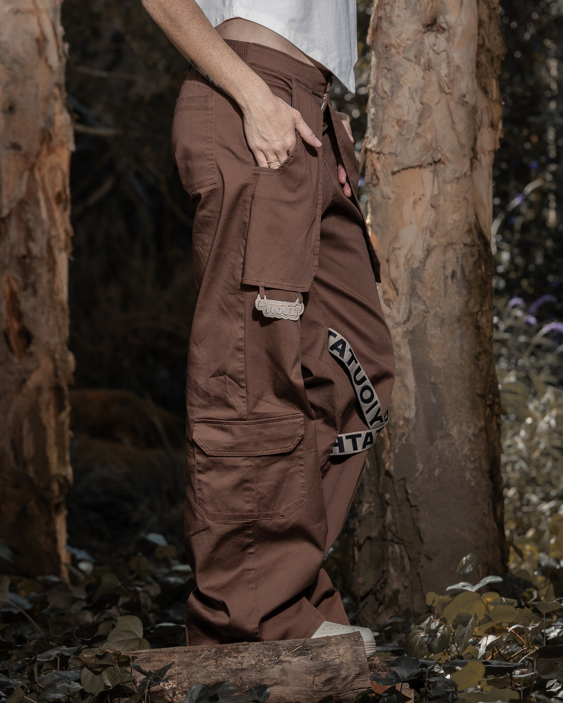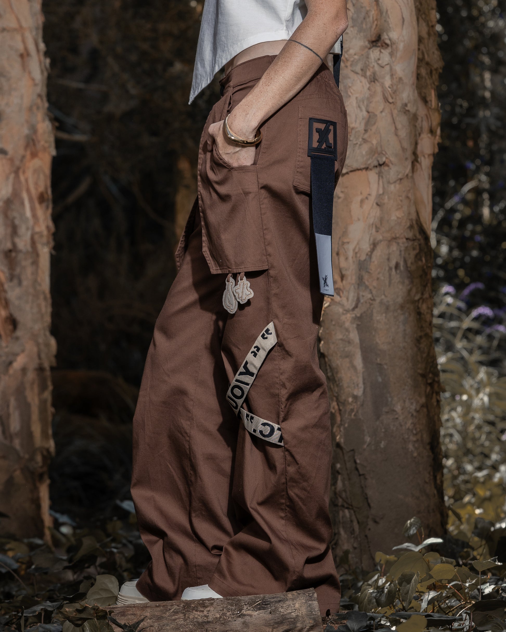 El Spore Pant redefine el estilo urbano con una silueta amplia y una estética utilitaria contemporánea. Su tono marrón cálido, junto con detalles gráficos y apliques distintivos, lo convierten en una prenda de carácter fuerte, ideal para quienes buscan destacar sin perder comodidad.