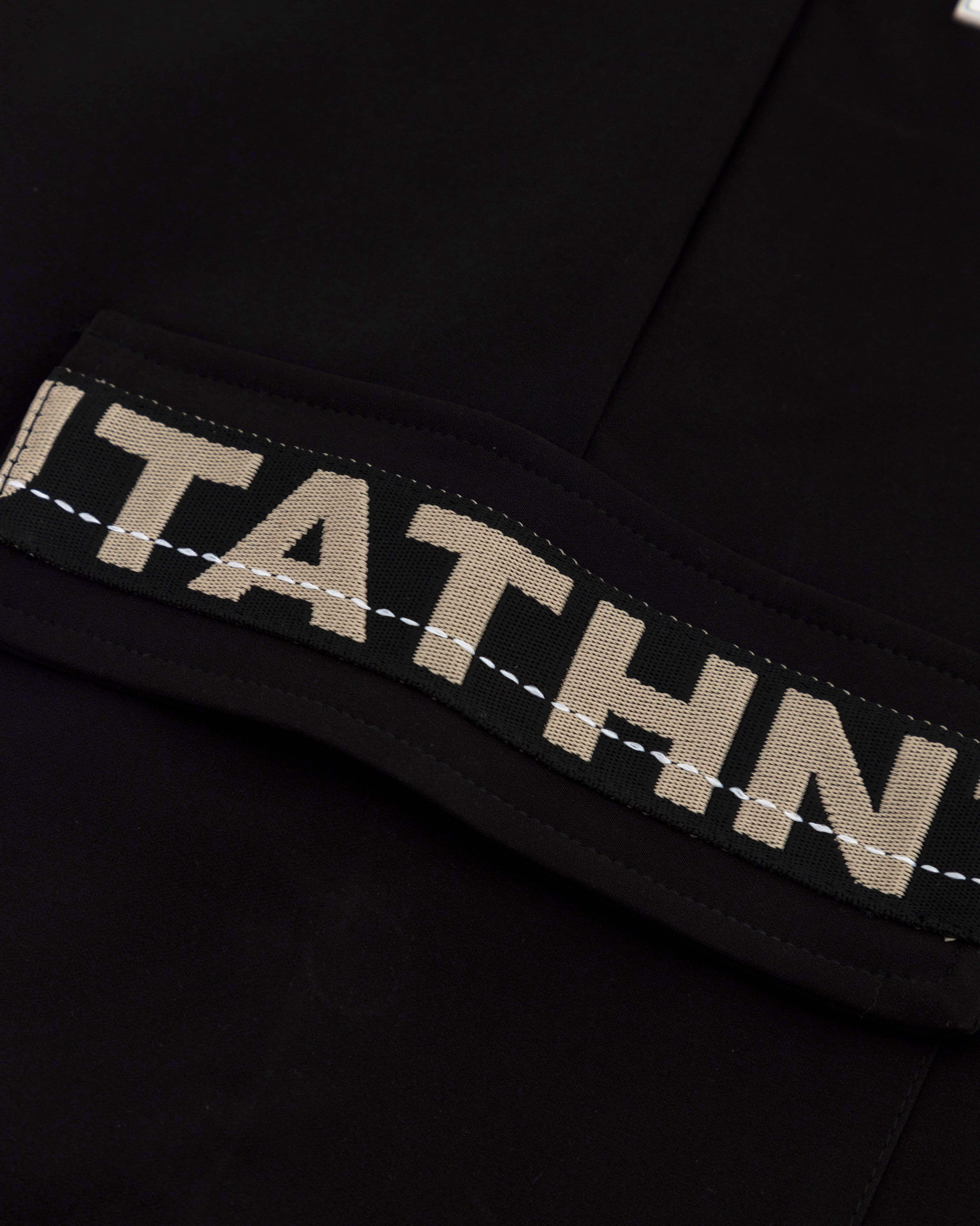 Fabricado en algodón de 280 g, presenta bolsillos cargo con cierres funcionales, pretina elástica con cordones ajustables, etiquetas tejidas con branding y terminaciones reforzadas en puños. Su diseño aporta equilibrio entre comodidad y carácter técnico.