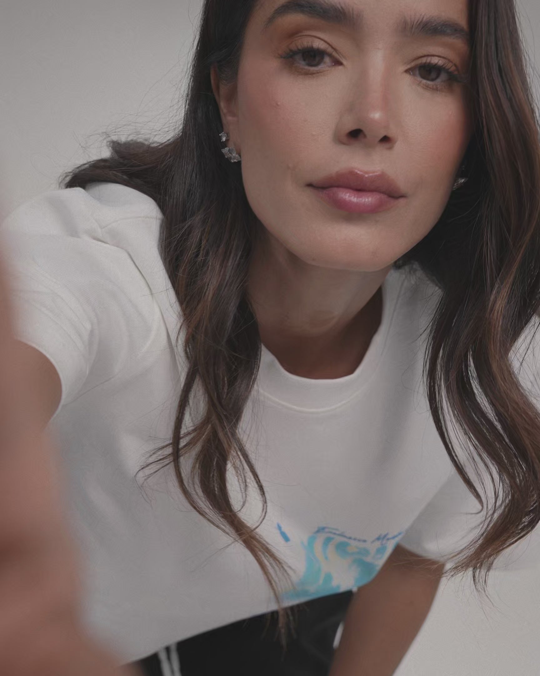 El Vaporization Crop Top lleva lo esencial a otro nivel. Confeccionado en algodón de 280 g (medium weight), combina estructura y suavidad en una silueta regular fit que destaca por su base ivory y un gráfico en tonos azules. Cada detalle refleja la estética del high streetwear con una interpretación artística y minimalista.