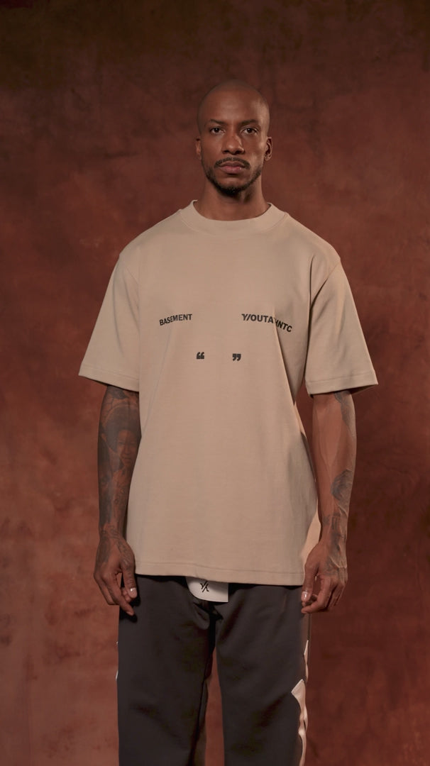 Una camiseta fit regular elaborada en algodón de 350g. Esta pieza será tu mejor aliada, su tono arena combina a la perfección con las texturas y los colores que se te ocurra.