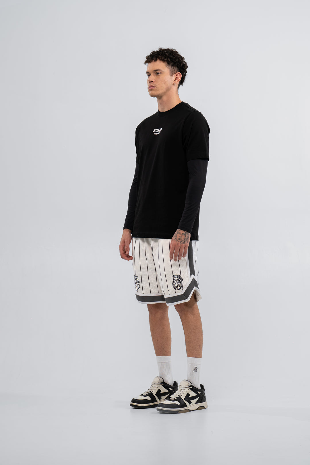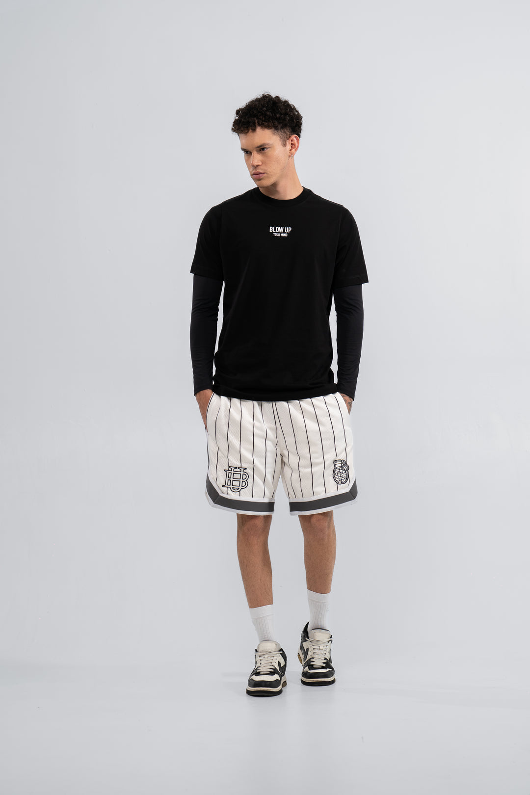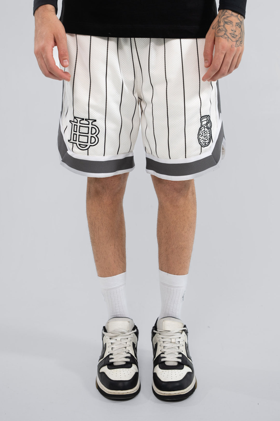 Eleva tu estilo urbano con el White Short de estilo basketball. Confeccionado en malla transpirable y con un diseño de rayas verticales, este short combina comodidad y actitud. Su pretina resortada con cordón ajustable asegura un ajuste perfecto, mientras los bordados en contraste y detalles laterales le dan un toque moderno y audaz. Ideal para quienes buscan destacar en cada movimiento sin renunciar al confort.