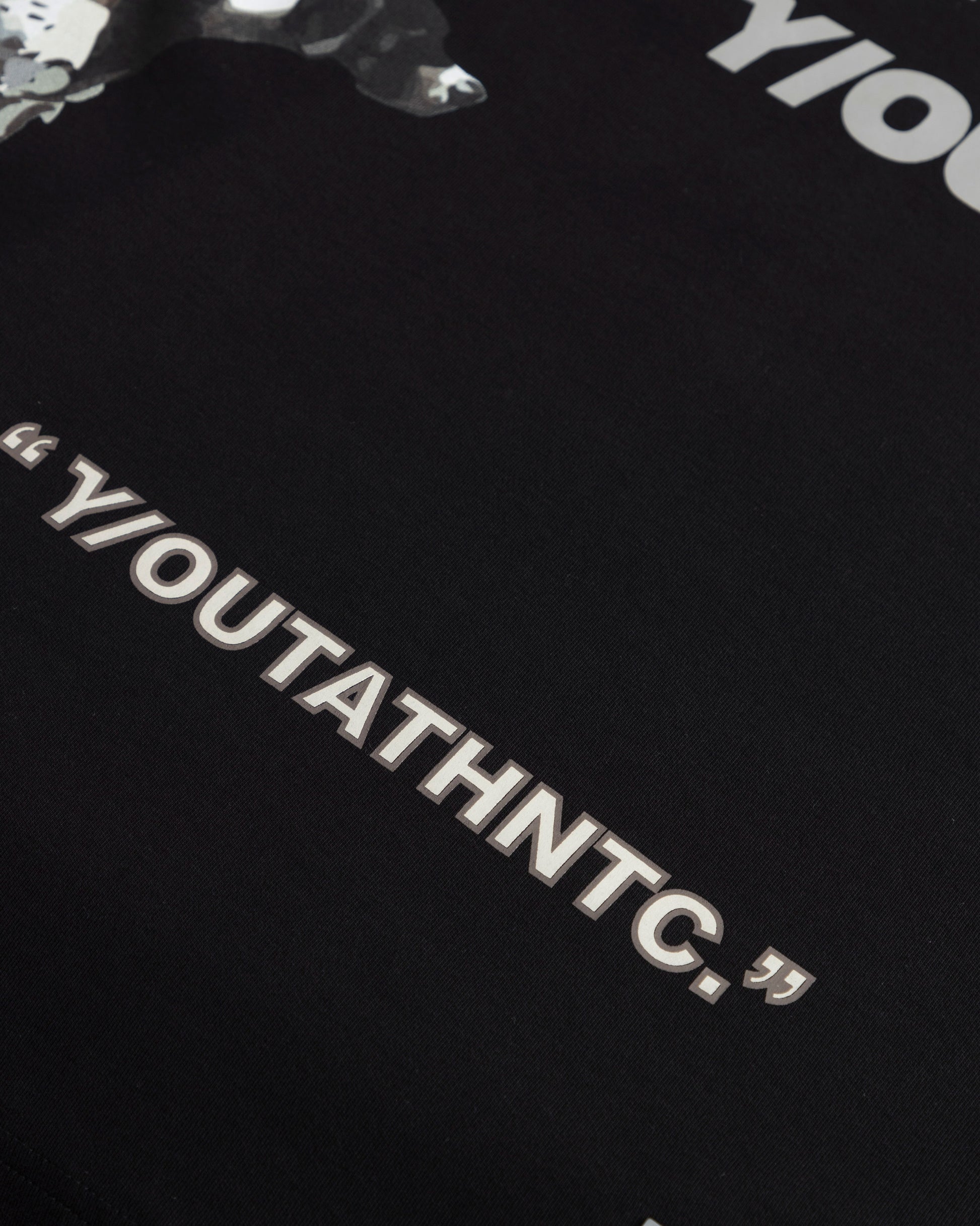 Tipografía “Y/OUT ATHNTC.” en el frente.