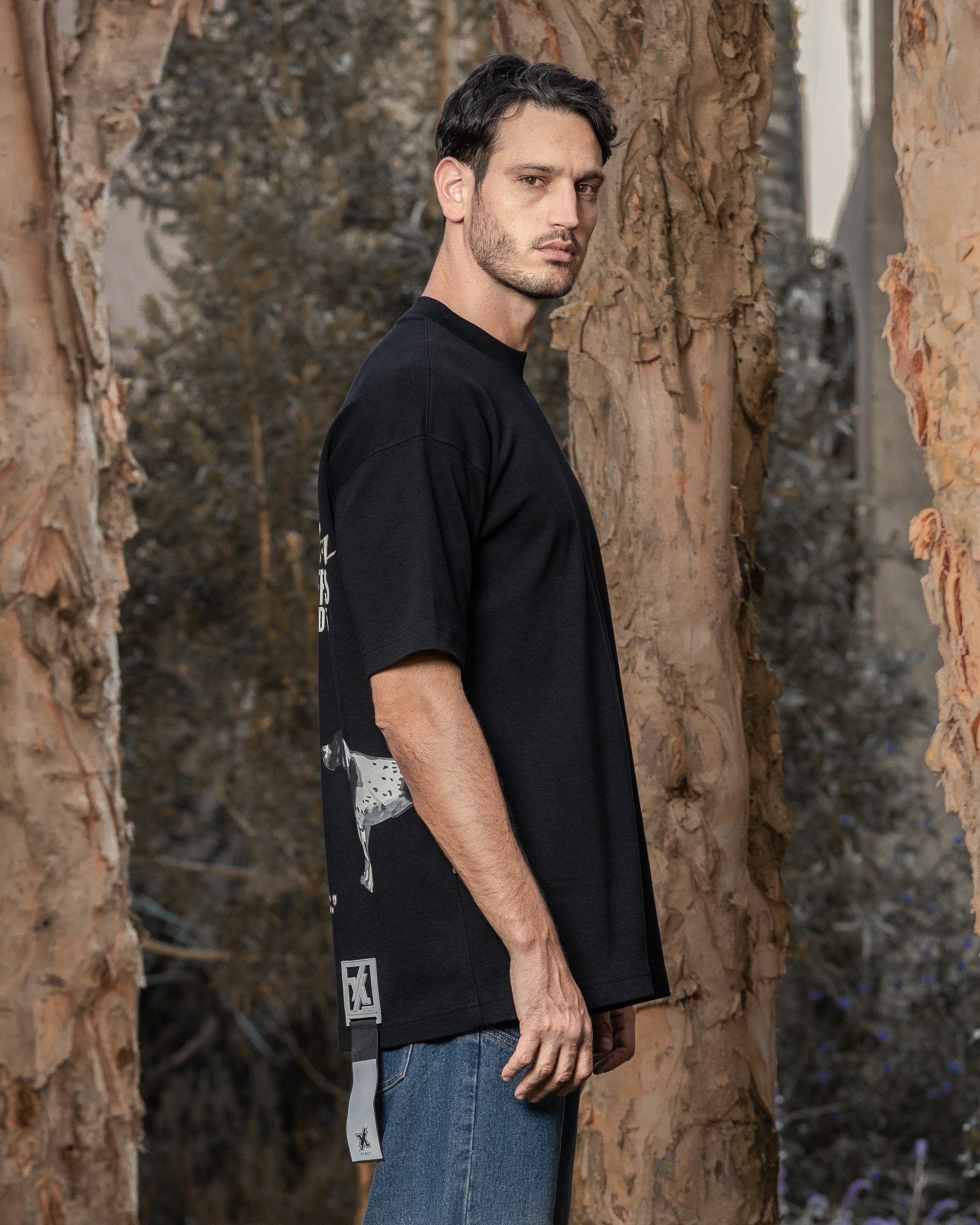La Winter T-Shirt es una declaración de rebeldía con esencia urbana. Su gráfico frontal protagonizado por el perro cazador y la tipografía en alto contraste evocan fuerza y carácter, convirtiéndola en una pieza clave para quienes buscan destacar con autenticidad en la calle.
